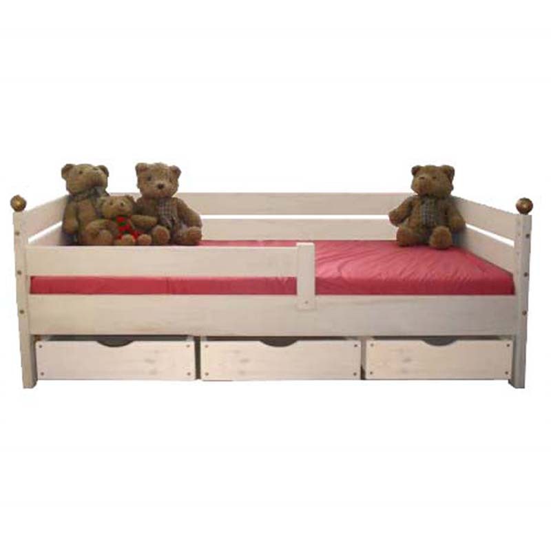 Kinder.- Prinzessinnenbett "Comtesse" aus Holz in 70x160cm, inklusive 3 Rollkasten, Rausfallschutz & Lattenrost