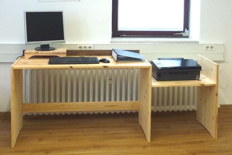 Diese Anbauplatte und die bewegliche Platte für den Monitor sind die ideale Ergänzung zu unserem Schreibtisch. Mit der verschiebbaren Platte können Sie Ihren Monitor links, mittig oder rechts positionieren, wie es Ihnen am besten gefällt. Platz, z.B. für Ihren Drucker, oder Ablagefläche, z.B. für Ordner, bietet unsere Anbauplatte. Alle Kanten sind benutzerfreundlich gerundet. Die Oberfläche ist mit schadstofffreiem Pflanzenöl und Hartwachs geschützt und leicht zu pflegen.